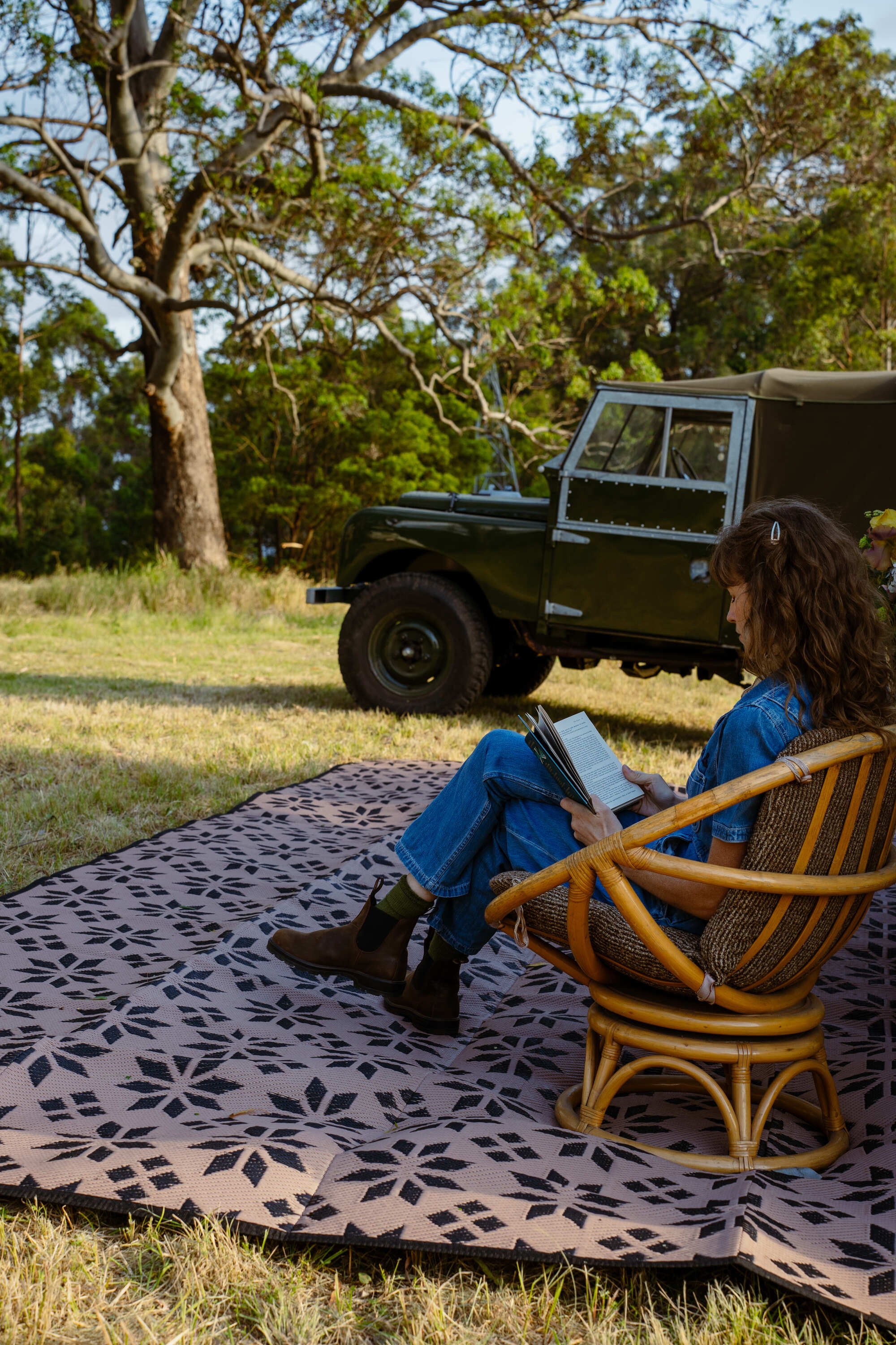 Elevate your setup with our Harlow Outdoor Mat — a spacious, reversible outdoor rug designed for slow days under the awning or out in the open. Crafted from recycled plastic, it’s lightweight, easy to clean, and made for stylish travellers who value both beauty and practicality.
